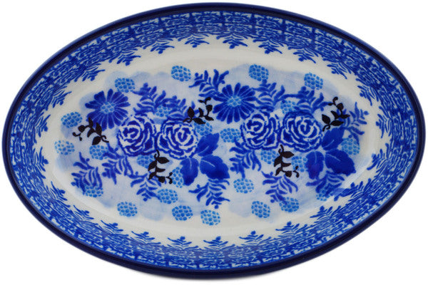 This Frosted Bouquet 6" Condiment Dish was handmade and hand decorated in Boleslawiec, Poland by skilled artisans according to old traditional methods. This is a Polish pottery Signature Unikat, which means that it has been hand painted with both sponges and brushes and it is signed by the artist who painted it. Unikat pieces are the most intricate works of art. Larger Unikat items take hours of very careful work to finish. This Polish stoneware is microwave, dishwasher, freezer, and oven safe up to 480°F. It does not contain lead or cadmium. It is part of the Frosted Bouquet Collection.