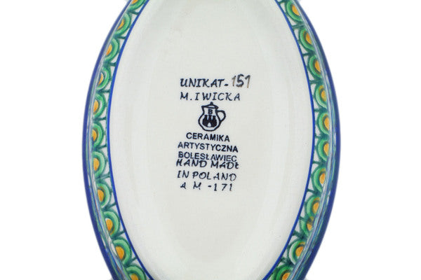 This Mardi Gras 6" Condiment Dish was handmade and hand decorated in Boleslawiec, Poland by skilled artisans according to old traditional methods. This is a Polish pottery Signature Unikat, which means that it has been hand painted with both sponges and brushes and it is signed by the artist who painted it. Unikat pieces are the most intricate works of art. Larger Unikat items take hours of very careful work to finish. This Polish stoneware is microwave, dishwasher, freezer, and oven safe up to 480°F. It does not contain lead or cadmium. It is part of the Mardi Gras Collection.