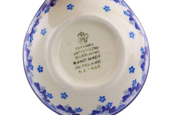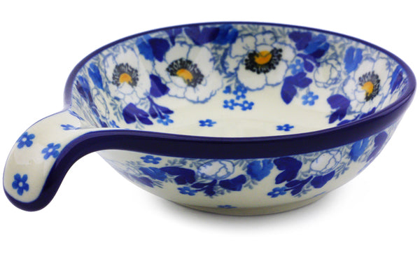 This Blue Spring 7" Condiment Dish was handmade and hand decorated in Boleslawiec, Poland by skilled artisans according to old traditional methods. This Polish stoneware is microwave, dishwasher, freezer, and oven safe up to 480°F. It does not contain lead or cadmium. It is part of the Blue Spring Collection.