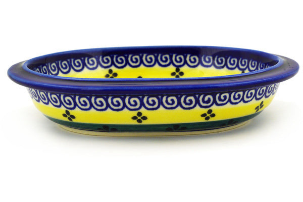 This Cabbage Roses 7" Condiment Dish was handmade and hand decorated in Boleslawiec, Poland by skilled artisans according to old traditional methods. This Polish stoneware is microwave, dishwasher, freezer, and oven safe up to 480°F. It does not contain lead or cadmium. It is part of the Cabbage Roses Collection.