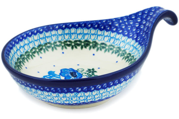 This Morning Poppies 7" Condiment Dish was handmade and hand decorated in Boleslawiec, Poland by skilled artisans according to old traditional methods. This is a Polish pottery Signature Unikat, which means that it has been hand painted with both sponges and brushes and it is signed by the artist who painted it. Unikat pieces are the most intricate works of art. Larger Unikat items take hours of very careful work to finish. This Polish stoneware is microwave, dishwasher, freezer, and oven safe up to 480°F. It does not contain lead or cadmium. It is part of the Morning Poppies Collection.