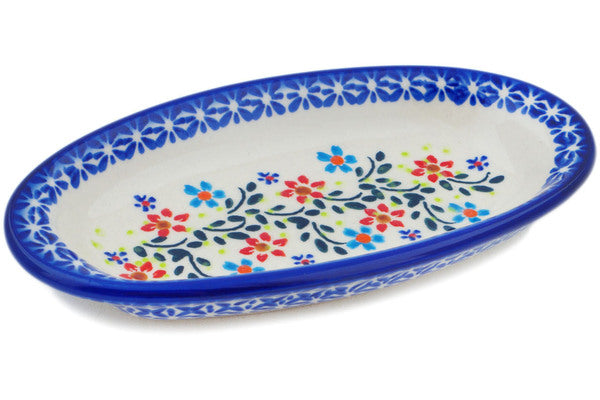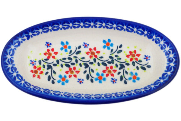 This Neon Wreath 7" Condiment Dish was handmade and hand decorated in Boleslawiec, Poland by skilled artisans according to old traditional methods. This Polish stoneware is microwave, dishwasher, freezer, and oven safe up to 480°F. It does not contain lead or cadmium. It is part of the Neon Wreath Collection.