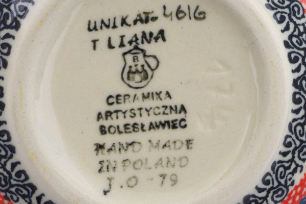 This Splendid Morning Glow 7" Condiment Dish was handmade and hand decorated in Boleslawiec, Poland by skilled artisans according to old traditional methods. This is a Polish pottery Signature Unikat, which means that it has been hand painted with both sponges and brushes and it is signed by the artist who painted it. Unikat pieces are the most intricate works of art. Larger Unikat items take hours of very careful work to finish. This Polish stoneware is microwave, dishwasher, freezer, and oven safe up to 480°F. It does not contain lead or cadmium. It is part of the Splendid Morning Glow Collection.