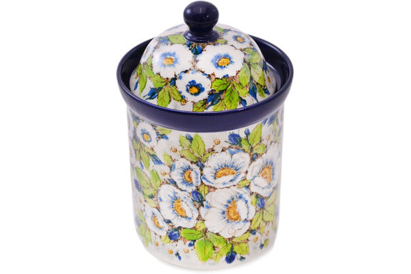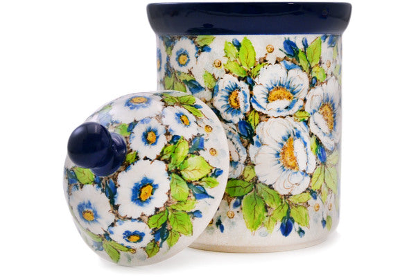 This Little Wild Field Flowers 8" Cookie Jar was handmade and hand decorated in Boleslawiec, Poland by skilled artisans according to old traditional methods. This is a Polish pottery Signature Unikat, which means that it has been hand painted with both sponges and brushes and it is signed by the artist who painted it. Unikat pieces are the most intricate works of art. Larger Unikat items take hours of very careful work to finish. This Polish stoneware is microwave, dishwasher, freezer, and oven safe up to 480°F. It does not contain lead or cadmium. It is part of the Little Wild Field Flowers Collection.