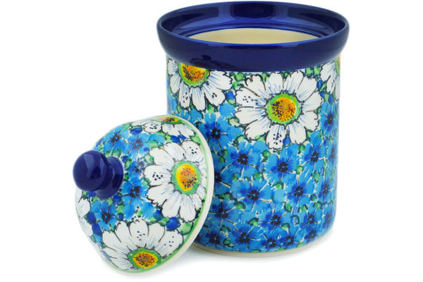 This Pansies And Daisies 8" Cookie Jar was handmade and hand decorated in Boleslawiec, Poland by skilled artisans according to old traditional methods. This is a Polish pottery Signature Unikat, which means that it has been hand painted with both sponges and brushes and it is signed by the artist who painted it. Unikat pieces are the most intricate works of art. Larger Unikat items take hours of very careful work to finish. This Polish stoneware is microwave, dishwasher, freezer, and oven safe up to 480°F. It does not contain lead or cadmium. It is part of the Pansies And Daisies Collection.