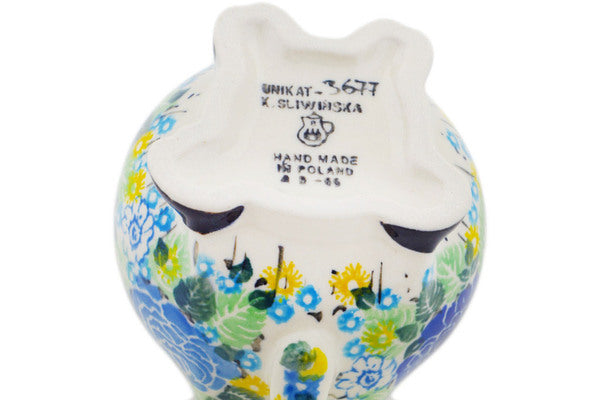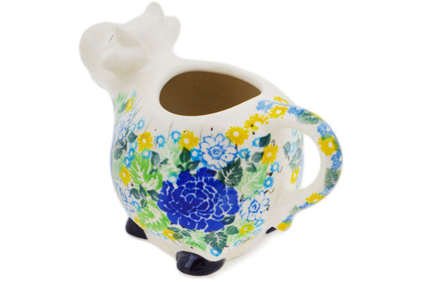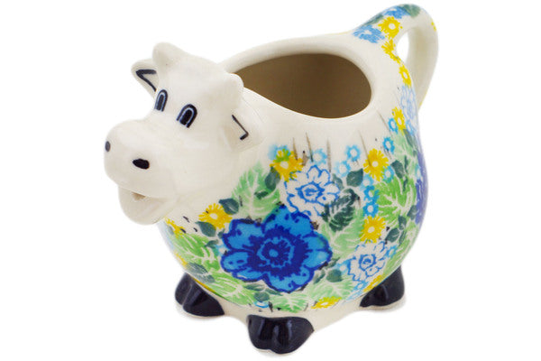 This Lime Bouquet 6 oz Cow Shaped Creamer was handmade and hand decorated in Boleslawiec, Poland by skilled artisans according to old traditional methods. This is a Polish pottery Signature Unikat, which means that it has been hand painted with both sponges and brushes and it is signed by the artist who painted it. Unikat pieces are the most intricate works of art. Larger Unikat items take hours of very careful work to finish. This Polish stoneware is microwave, dishwasher, freezer, and oven safe up to 480°F. It does not contain lead or cadmium. It is part of the Lime Bouquet Collection.