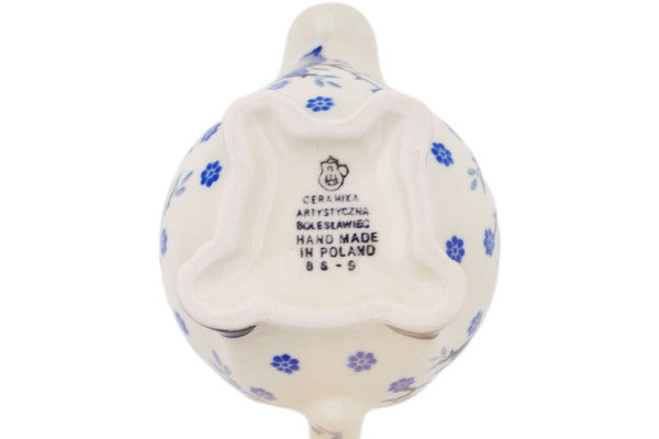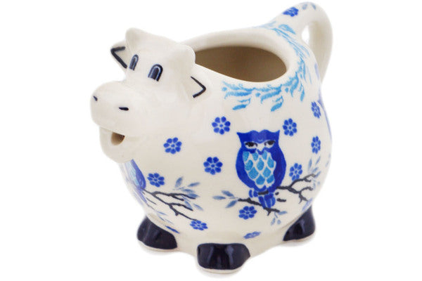 This Winter Owl Aria 6 oz Cow Shaped Creamer was handmade and hand decorated in Boleslawiec, Poland by skilled artisans according to old traditional methods. This Polish stoneware is microwave, dishwasher, freezer, and oven safe up to 480°F. It does not contain lead or cadmium. It is part of the Winter Owl Aria Collection.