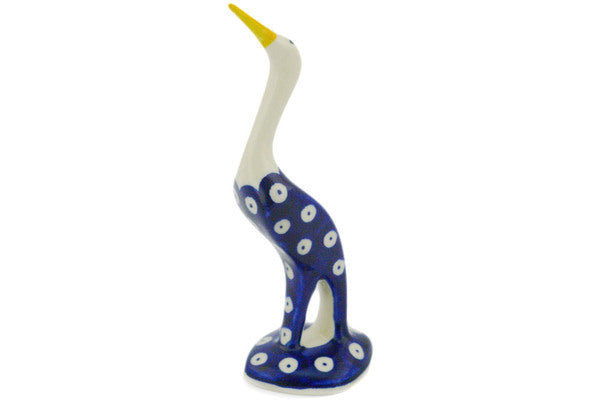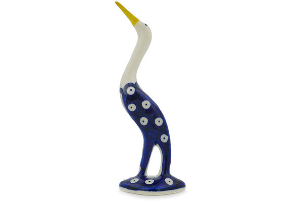 This Lovely Blue Eyes 7" Crane Figurine was handmade and hand decorated in Boleslawiec, Poland by skilled artisans according to old traditional methods. This Polish stoneware is microwave, dishwasher, freezer, and oven safe up to 480°F. It does not contain lead or cadmium. It is part of the Lovely Blue Eyes Collection.