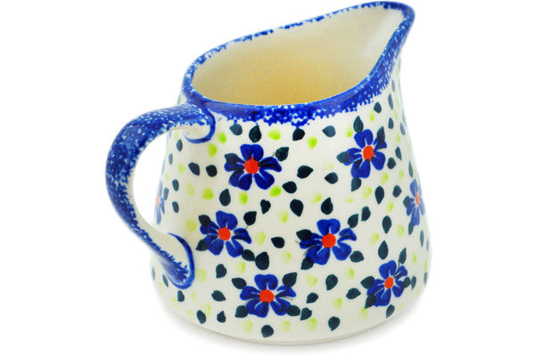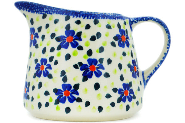 This Hope Flowes 10 oz Creamer was handmade and hand decorated in Boleslawiec, Poland by skilled artisans according to old traditional methods. This is a Polish pottery Signature Unikat, which means that it has been hand painted with both sponges and brushes and it is signed by the artist who painted it. Unikat pieces are the most intricate works of art. Larger Unikat items take hours of very careful work to finish. This Polish stoneware is microwave, dishwasher, freezer, and oven safe up to 480°F. It does not contain lead or cadmium. It is part of the Hope Flowes Collection.