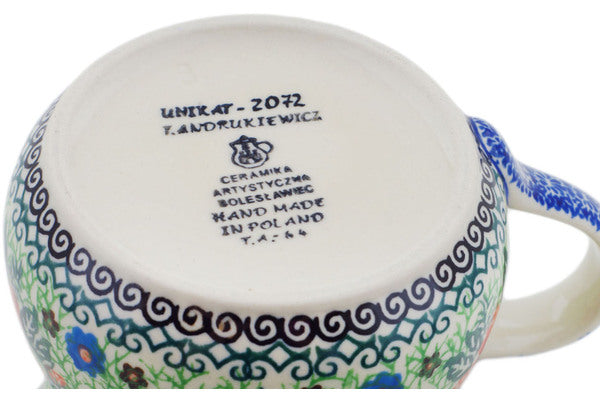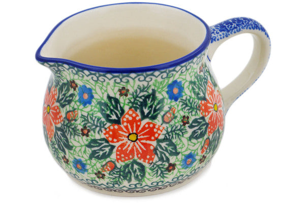 This Red Jackmanii 12 oz Creamer was handmade and hand decorated in Boleslawiec, Poland by skilled artisans according to old traditional methods. This is a Polish pottery Signature Unikat, which means that it has been hand painted with both sponges and brushes and it is signed by the artist who painted it. Unikat pieces are the most intricate works of art. Larger Unikat items take hours of very careful work to finish. This Polish stoneware is microwave, dishwasher, freezer, and oven safe up to 480°F. It does not contain lead or cadmium. It is part of the Red Jackmanii Collection.