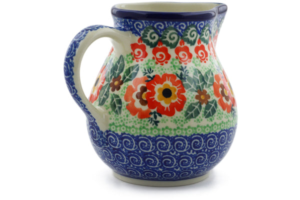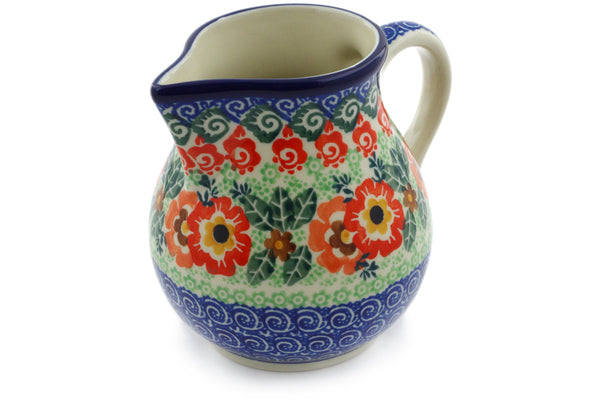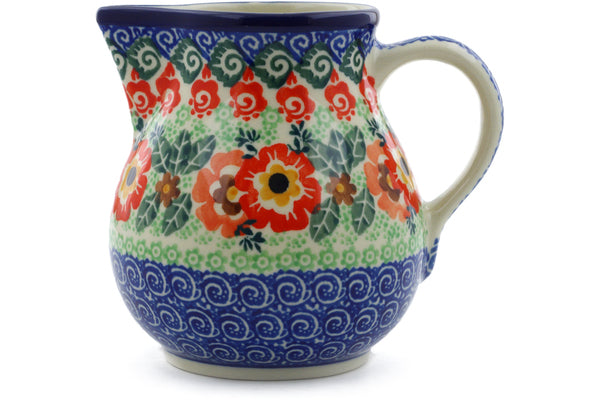 This Wild Poppy Ring 16 oz Creamer was handmade and hand decorated in Boleslawiec, Poland by skilled artisans according to old traditional methods. This is a Polish pottery Signature Unikat, which means that it has been hand painted with both sponges and brushes and it is signed by the artist who painted it. Unikat pieces are the most intricate works of art. Larger Unikat items take hours of very careful work to finish. This Polish stoneware is microwave, dishwasher, freezer, and oven safe up to 480°F. It does not contain lead or cadmium. It is part of the Wild Poppy Ring Collection.
