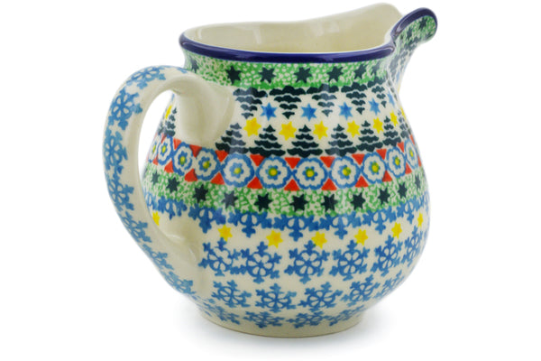 This Christmas Forest 8 oz Creamer was handmade and hand decorated in Boleslawiec, Poland by skilled artisans according to old traditional methods. This is a Polish pottery Signature Unikat, which means that it has been hand painted with both sponges and brushes and it is signed by the artist who painted it. Unikat pieces are the most intricate works of art. Larger Unikat items take hours of very careful work to finish. This Polish stoneware is microwave, dishwasher, freezer, and oven safe up to 480°F. It does not contain lead or cadmium. It is part of the Christmas Forest Collection.