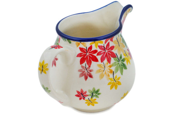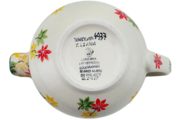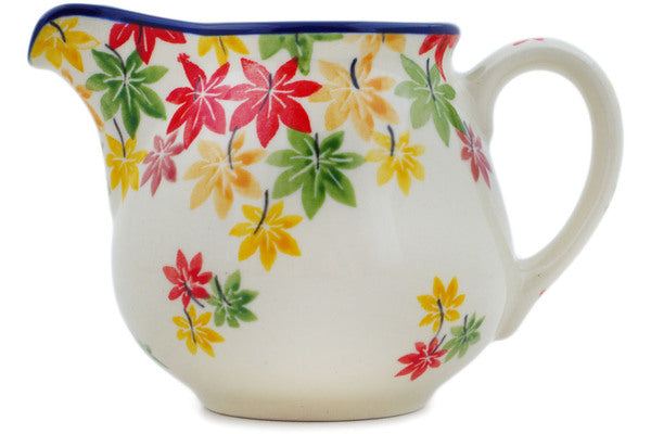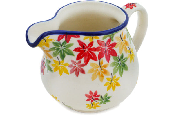 This Collecting Leaves 8 oz Creamer was handmade and hand decorated in Boleslawiec, Poland by skilled artisans according to old traditional methods. This is a Polish pottery Signature Unikat, which means that it has been hand painted with both sponges and brushes and it is signed by the artist who painted it. Unikat pieces are the most intricate works of art. Larger Unikat items take hours of very careful work to finish. This Polish stoneware is microwave, dishwasher, freezer, and oven safe up to 480°F. It does not contain lead or cadmium. It is part of the Collecting Leaves Collection.