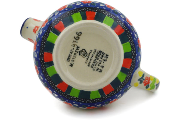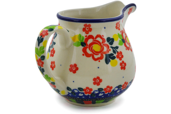 This Floral Puzzles 8 oz Creamer was handmade and hand decorated in Boleslawiec, Poland by skilled artisans according to old traditional methods. This is a Polish pottery Signature Unikat, which means that it has been hand painted with both sponges and brushes and it is signed by the artist who painted it. Unikat pieces are the most intricate works of art. Larger Unikat items take hours of very careful work to finish. This Polish stoneware is microwave, dishwasher, freezer, and oven safe up to 480°F. It does not contain lead or cadmium. It is part of the Floral Puzzles Collection.