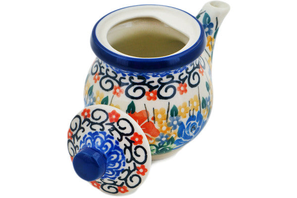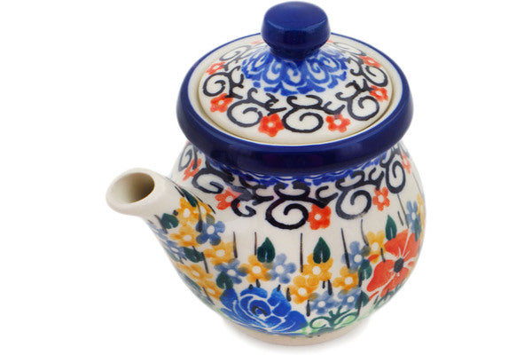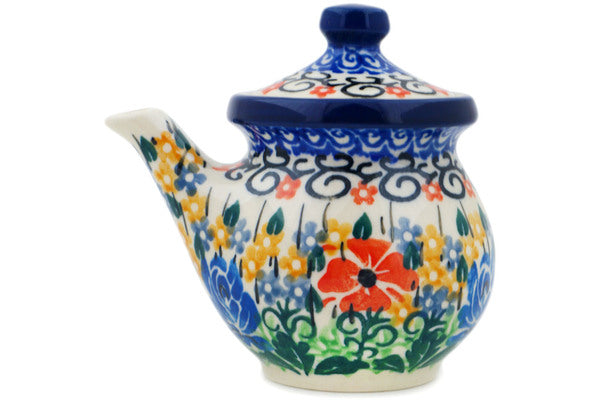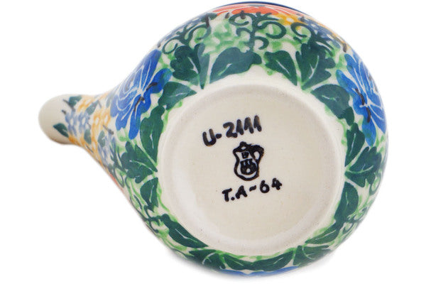 This Golden Daisies 5 oz Creamer with Lid was handmade and hand decorated in Boleslawiec, Poland by skilled artisans according to old traditional methods. This is a Polish pottery Signature Unikat, which means that it has been hand painted with both sponges and brushes and it is signed by the artist who painted it. Unikat pieces are the most intricate works of art. Larger Unikat items take hours of very careful work to finish. This Polish stoneware is microwave, dishwasher, freezer, and oven safe up to 480°F. It does not contain lead or cadmium. It is part of the Golden Daisies Collection.