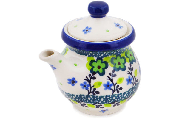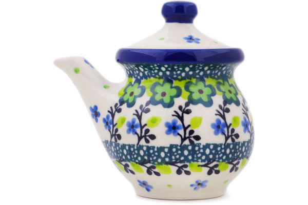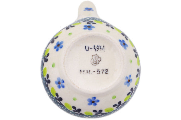 This Green Chrysanthemums 5 oz Creamer with Lid was handmade and hand decorated in Boleslawiec, Poland by skilled artisans according to old traditional methods. This is a Polish pottery Signature Unikat, which means that it has been hand painted with both sponges and brushes and it is signed by the artist who painted it. Unikat pieces are the most intricate works of art. Larger Unikat items take hours of very careful work to finish. This Polish stoneware is microwave, dishwasher, freezer, and oven safe up to 480°F. It does not contain lead or cadmium. It is part of the Green Chrysanthemums Collection.