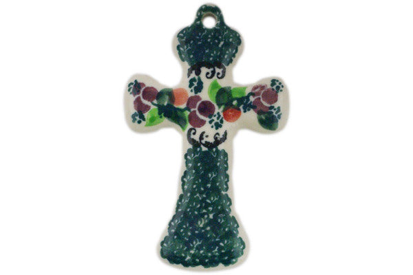 This Berry Garland 3" Cross was handmade and hand decorated in Boleslawiec, Poland by skilled artisans according to old traditional methods. This Polish stoneware is microwave, dishwasher, freezer, and oven safe up to 480°F. It does not contain lead or cadmium. It is part of the Berry Garland Collection.