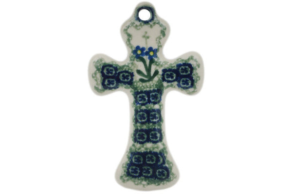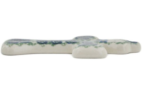 This Blue Daisy Circle 3" Cross was handmade and hand decorated in Boleslawiec, Poland by skilled artisans according to old traditional methods. This Polish stoneware is microwave, dishwasher, freezer, and oven safe up to 480°F. It does not contain lead or cadmium. It is part of the Blue Daisy Circle Collection.
