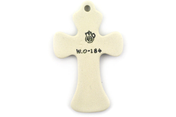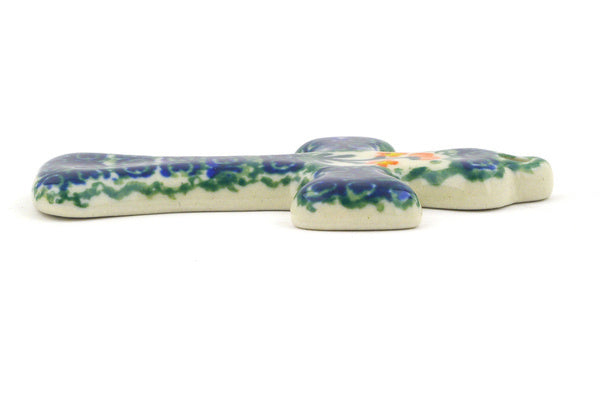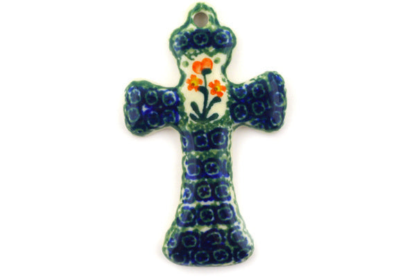 This Peach Spring Daisy 3" Cross was handmade and hand decorated in Boleslawiec, Poland by skilled artisans according to old traditional methods. This Polish stoneware is microwave, dishwasher, freezer, and oven safe up to 480°F. It does not contain lead or cadmium. It is part of the Peach Spring Daisy Collection.