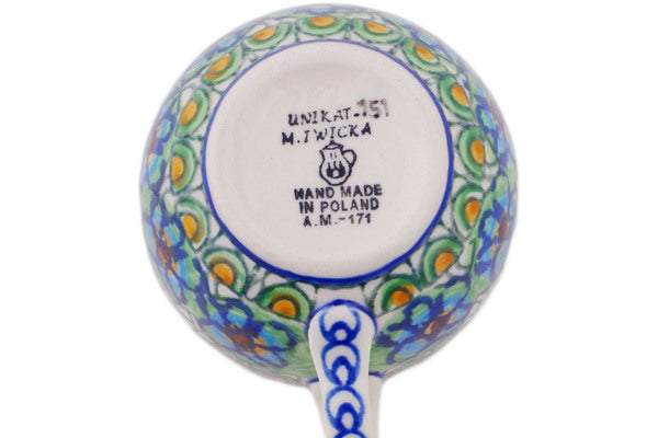 This Mardi Gras 3 oz Cup was handmade and hand decorated in Boleslawiec, Poland by skilled artisans according to old traditional methods. This is a Polish pottery Signature Unikat, which means that it has been hand painted with both sponges and brushes and it is signed by the artist who painted it. Unikat pieces are the most intricate works of art. Larger Unikat items take hours of very careful work to finish. This Polish stoneware is microwave, dishwasher, freezer, and oven safe up to 480°F. It does not contain lead or cadmium. It is part of the Mardi Gras Collection.