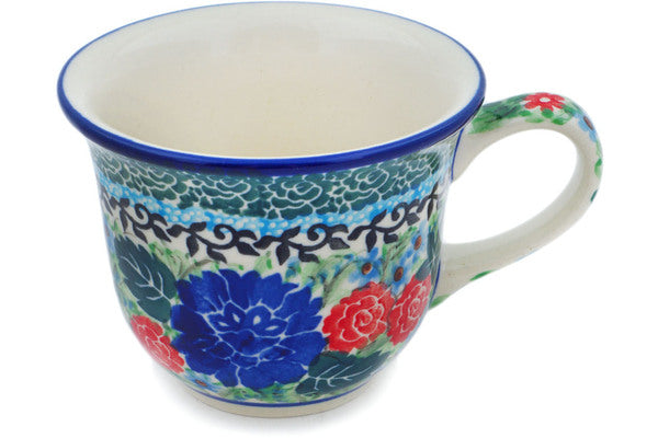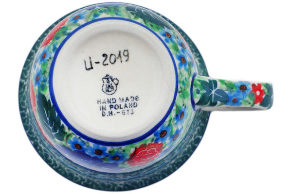 This Garden Trellis 6 oz Cup was handmade and hand decorated in Boleslawiec, Poland by skilled artisans according to old traditional methods. This is a Polish pottery Signature Unikat, which means that it has been hand painted with both sponges and brushes and it is signed by the artist who painted it. Unikat pieces are the most intricate works of art. Larger Unikat items take hours of very careful work to finish. This Polish stoneware is microwave, dishwasher, freezer, and oven safe up to 480°F. It does not contain lead or cadmium. It is part of the Garden Trellis Collection.