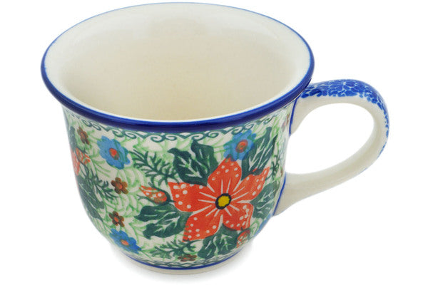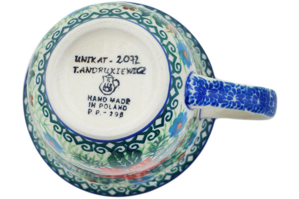This Red Jackmanii 6 oz Cup was handmade and hand decorated in Boleslawiec, Poland by skilled artisans according to old traditional methods. This is a Polish pottery Signature Unikat, which means that it has been hand painted with both sponges and brushes and it is signed by the artist who painted it. Unikat pieces are the most intricate works of art. Larger Unikat items take hours of very careful work to finish. This Polish stoneware is microwave, dishwasher, freezer, and oven safe up to 480°F. It does not contain lead or cadmium. It is part of the Red Jackmanii Collection.
