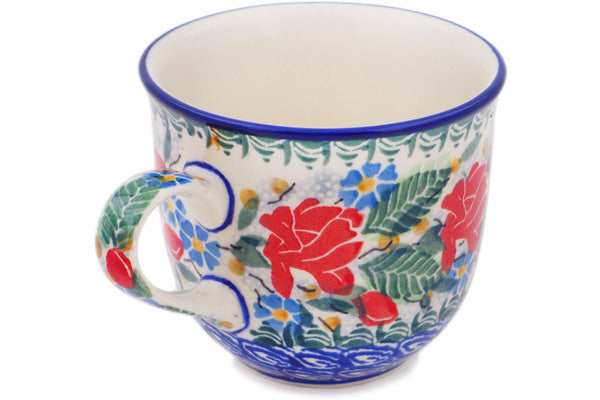 This Green Bird Meadow 8 oz Cup was handmade and hand decorated in Boleslawiec, Poland by skilled artisans according to old traditional methods. This is a Polish pottery Signature Unikat, which means that it has been hand painted with both sponges and brushes and it is signed by the artist who painted it. Unikat pieces are the most intricate works of art. Larger Unikat items take hours of very careful work to finish. This Polish stoneware is microwave, dishwasher, freezer, and oven safe up to 480°F. It does not contain lead or cadmium. It is part of the Green Bird Meadow Collection.