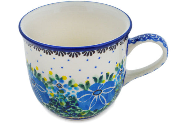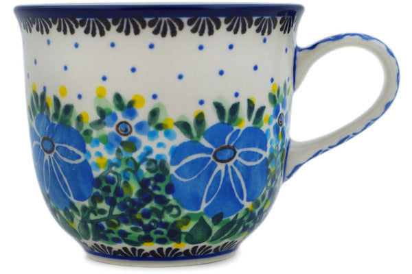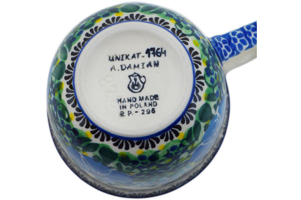 This Morning Glory 8 oz Cup was handmade and hand decorated in Boleslawiec, Poland by skilled artisans according to old traditional methods. This is a Polish pottery Signature Unikat, which means that it has been hand painted with both sponges and brushes and it is signed by the artist who painted it. Unikat pieces are the most intricate works of art. Larger Unikat items take hours of very careful work to finish. This Polish stoneware is microwave, dishwasher, freezer, and oven safe up to 480°F. It does not contain lead or cadmium. It is part of the Morning Glory Collection.