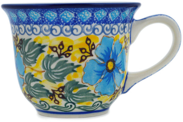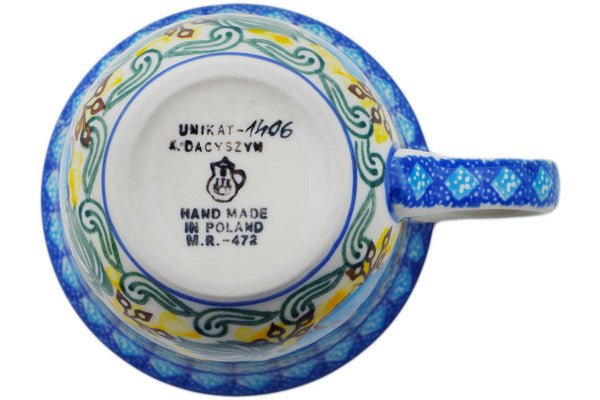 This Turkish Flowers 8 oz Cup was handmade and hand decorated in Boleslawiec, Poland by skilled artisans according to old traditional methods. This is a Polish pottery Signature Unikat, which means that it has been hand painted with both sponges and brushes and it is signed by the artist who painted it. Unikat pieces are the most intricate works of art. Larger Unikat items take hours of very careful work to finish. This Polish stoneware is microwave, dishwasher, freezer, and oven safe up to 480°F. It does not contain lead or cadmium. It is part of the Turkish Flowers Collection.