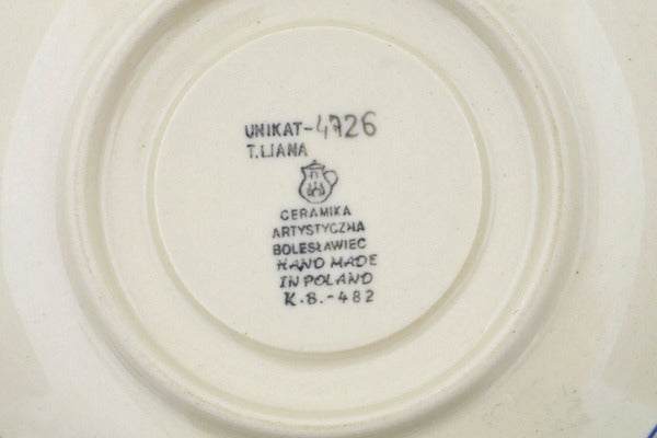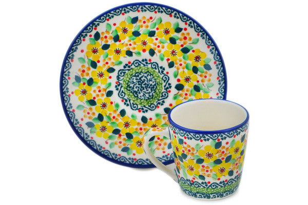 This Happy Thoughts 3 oz Cup with Saucer was handmade and hand decorated in Boleslawiec, Poland by skilled artisans according to old traditional methods. This is a Polish pottery Signature Unikat, which means that it has been hand painted with both sponges and brushes and it is signed by the artist who painted it. Unikat pieces are the most intricate works of art. Larger Unikat items take hours of very careful work to finish. This Polish stoneware is microwave, dishwasher, freezer, and oven safe up to 480°F. It does not contain lead or cadmium. It is part of the Happy Thoughts Collection.