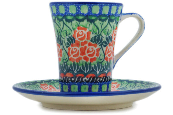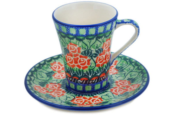 This Red Impatiens 5 oz Cup with Saucer was handmade and hand decorated in Boleslawiec, Poland by skilled artisans according to old traditional methods. This is a Polish pottery Signature Unikat, which means that it has been hand painted with both sponges and brushes and it is signed by the artist who painted it. Unikat pieces are the most intricate works of art. Larger Unikat items take hours of very careful work to finish. This Polish stoneware is microwave, dishwasher, freezer, and oven safe up to 480°F. It does not contain lead or cadmium. It is part of the Red Impatiens Collection.