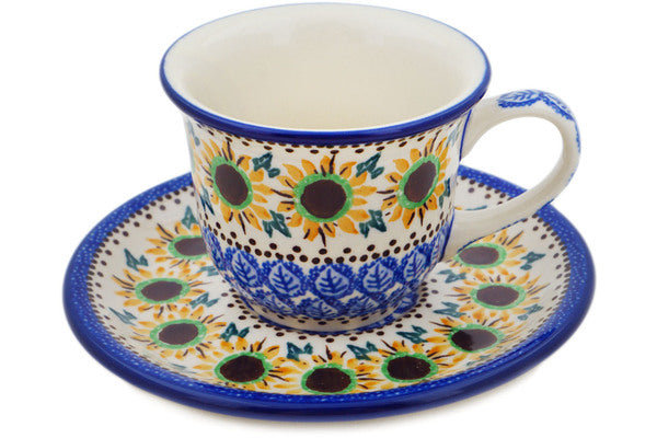 This Golden Autumn 7 oz Cup with Saucer was handmade and hand decorated in Boleslawiec, Poland by skilled artisans according to old traditional methods. This is a Polish pottery Signature Unikat, which means that it has been hand painted with both sponges and brushes and it is signed by the artist who painted it. Unikat pieces are the most intricate works of art. Larger Unikat items take hours of very careful work to finish. This Polish stoneware is microwave, dishwasher, freezer, and oven safe up to 480°F. It does not contain lead or cadmium. It is part of the Golden Autumn Collection.