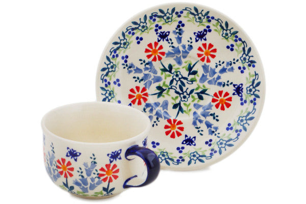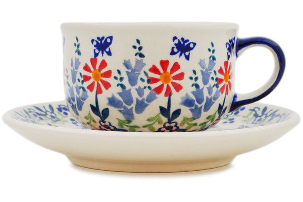 This Last Summer Flowers 7 oz Cup with Saucer was handmade and hand decorated in Boleslawiec, Poland by skilled artisans according to old traditional methods. This Polish stoneware is microwave, dishwasher, freezer, and oven safe up to 480°F. It does not contain lead or cadmium. It is part of the Last Summer Flowers Collection.