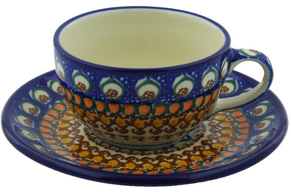 Cup with Saucer 7 oz Western Peacock Theme UNIKAT