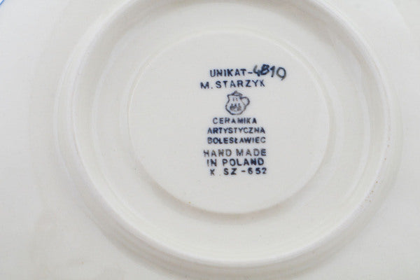 This Spring On The Branch 9 oz Cup with Saucer was handmade and hand decorated in Boleslawiec, Poland by skilled artisans according to old traditional methods. This is a Polish pottery Signature Unikat, which means that it has been hand painted with both sponges and brushes and it is signed by the artist who painted it. Unikat pieces are the most intricate works of art. Larger Unikat items take hours of very careful work to finish. This Polish stoneware is microwave, dishwasher, freezer, and oven safe up to 480°F. It does not contain lead or cadmium. It is part of the Spring On The Branch Collection.