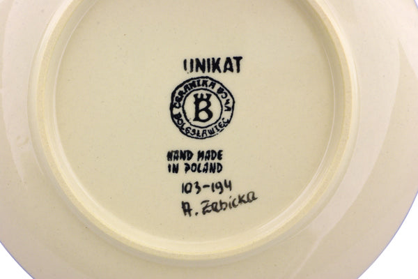 This Endless Summer 7½-inch Dessert Plate was handmade and hand decorated in Boleslawiec, Poland by skilled artisans according to old traditional methods. This is a Polish pottery Signature Unikat, which means that it has been hand painted with both sponges and brushes and it is signed by the artist who painted it. Unikat pieces are the most intricate works of art. Larger Unikat items take hours of very careful work to finish. This Polish stoneware is microwave, dishwasher, freezer, and oven safe up to 480°F. It does not contain lead or cadmium. It is part of the Endless Summer Collection.