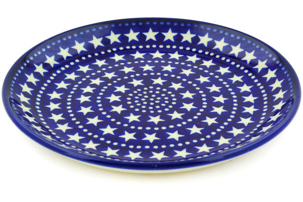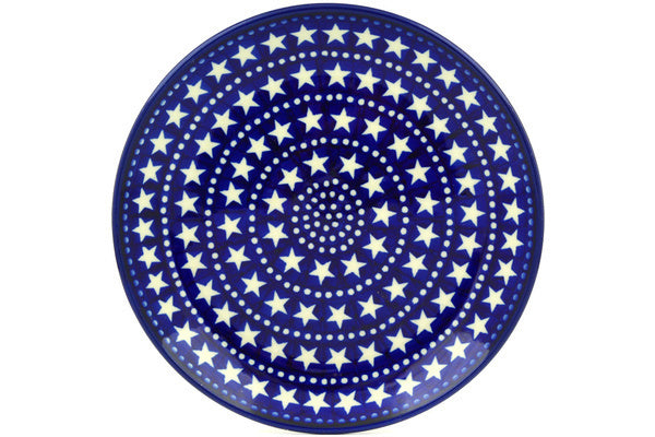 This Midnight Stars 8" Dessert Plate was handmade and hand decorated in Boleslawiec, Poland by skilled artisans according to old traditional methods. This Polish stoneware is microwave, dishwasher, freezer, and oven safe up to 480°F. It does not contain lead or cadmium. It is part of the Midnight Stars Collection.