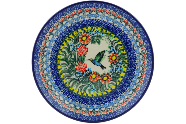 This Solo Hummingbird 8" Dessert Plate was handmade and hand decorated in Boleslawiec, Poland by skilled artisans according to old traditional methods. This is a Polish pottery Signature Unikat, which means that it has been hand painted with both sponges and brushes and it is signed by the artist who painted it. Unikat pieces are the most intricate works of art. Larger Unikat items take hours of very careful work to finish. This Polish stoneware is microwave, dishwasher, freezer, and oven safe up to 480°F. It does not contain lead or cadmium. It is part of the Solo Hummingbird Collection.