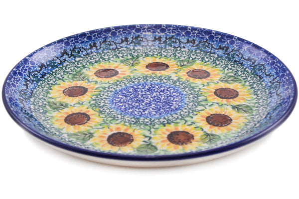 This Summer Sunnies 8" Dessert Plate was handmade and hand decorated in Boleslawiec, Poland by skilled artisans according to old traditional methods. This is a Polish pottery Signature Unikat, which means that it has been hand painted with both sponges and brushes and it is signed by the artist who painted it. Unikat pieces are the most intricate works of art. Larger Unikat items take hours of very careful work to finish. This Polish stoneware is microwave, dishwasher, freezer, and oven safe up to 480°F. It does not contain lead or cadmium. It is part of the Summer Sunnies Collection.