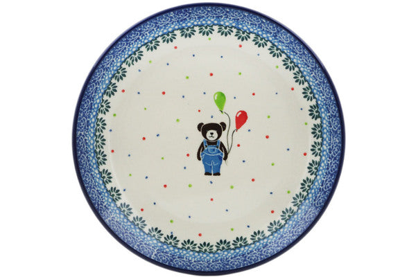 This Teddy Bear 8" Dessert Plate was handmade and hand decorated in Boleslawiec, Poland by skilled artisans according to old traditional methods. This is a Polish pottery Signature Unikat, which means that it has been hand painted with both sponges and brushes and it is signed by the artist who painted it. Unikat pieces are the most intricate works of art. Larger Unikat items take hours of very careful work to finish. This Polish stoneware is microwave, dishwasher, freezer, and oven safe up to 480°F. It does not contain lead or cadmium. It is part of the Teddy Bear Collection.