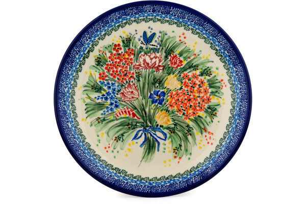 This Dragonfly Bouquet 10½-inch Dinner Plate was handmade and hand decorated in Boleslawiec, Poland by skilled artisans according to old traditional methods. This is a Polish pottery Signature Unikat, which means that it has been hand painted with both sponges and brushes and it is signed by the artist who painted it. Unikat pieces are the most intricate works of art. Larger Unikat items take hours of very careful work to finish. This Polish stoneware is microwave, dishwasher, freezer, and oven safe up to 480°F. It does not contain lead or cadmium. It is part of the Dragonfly Bouquet Collection.