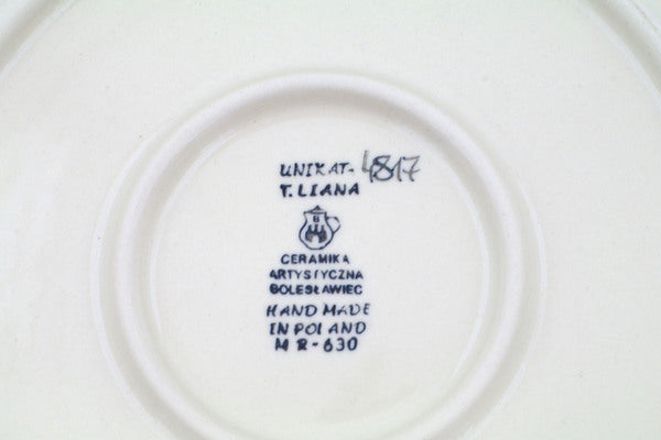 This Out Of Blue 10½-inch Dinner Plate was handmade and hand decorated in Boleslawiec, Poland by skilled artisans according to old traditional methods. This is a Polish pottery Signature Unikat, which means that it has been hand painted with both sponges and brushes and it is signed by the artist who painted it. Unikat pieces are the most intricate works of art. Larger Unikat items take hours of very careful work to finish. This Polish stoneware is microwave, dishwasher, freezer, and oven safe up to 480°F. It does not contain lead or cadmium. It is part of the Out Of Blue Collection.