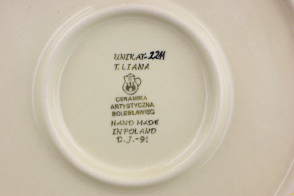 This Spring Garden 10½-inch Dinner Plate was handmade and hand decorated in Boleslawiec, Poland by skilled artisans according to old traditional methods. This is a Polish pottery Signature Unikat, which means that it has been hand painted with both sponges and brushes and it is signed by the artist who painted it. Unikat pieces are the most intricate works of art. Larger Unikat items take hours of very careful work to finish. This Polish stoneware is microwave, dishwasher, freezer, and oven safe up to 480°F. It does not contain lead or cadmium. It is part of the Spring Garden Collection.