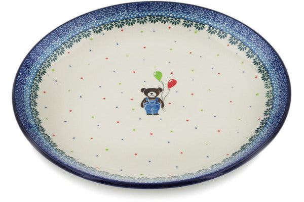 This Teddy Bear 10½-inch Dinner Plate was handmade and hand decorated in Boleslawiec, Poland by skilled artisans according to old traditional methods. This is a Polish pottery Signature Unikat, which means that it has been hand painted with both sponges and brushes and it is signed by the artist who painted it. Unikat pieces are the most intricate works of art. Larger Unikat items take hours of very careful work to finish. This Polish stoneware is microwave, dishwasher, freezer, and oven safe up to 480°F. It does not contain lead or cadmium. It is part of the Teddy Bear Collection.
