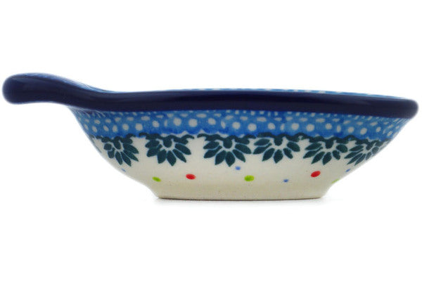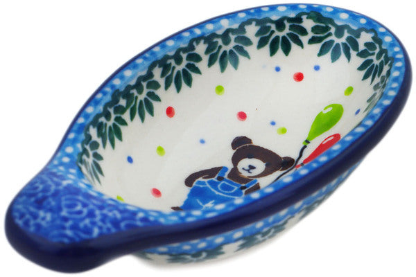 This Teddy Bear 4" Dish for Pits was handmade and hand decorated in Boleslawiec, Poland by skilled artisans according to old traditional methods. This is a Polish pottery Signature Unikat, which means that it has been hand painted with both sponges and brushes and it is signed by the artist who painted it. Unikat pieces are the most intricate works of art. Larger Unikat items take hours of very careful work to finish. This Polish stoneware is microwave, dishwasher, freezer, and oven safe up to 480°F. It does not contain lead or cadmium. It is part of the Teddy Bear Collection.