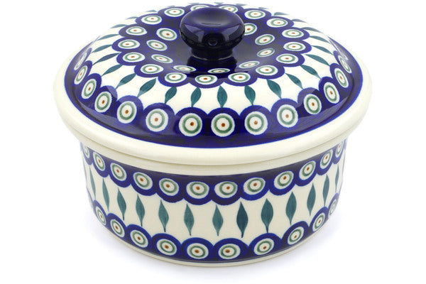 Dish with Cover 8" Peacock Leaves Theme