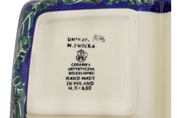 This Butter Blooms 10" Divided Dish was handmade and hand decorated in Boleslawiec, Poland by skilled artisans according to old traditional methods. This is a Polish pottery Signature Unikat, which means that it has been hand painted with both sponges and brushes and it is signed by the artist who painted it. Unikat pieces are the most intricate works of art. Larger Unikat items take hours of very careful work to finish. This Polish stoneware is microwave, dishwasher, freezer, and oven safe up to 480°F. It does not contain lead or cadmium. It is part of the Butter Blooms Collection.