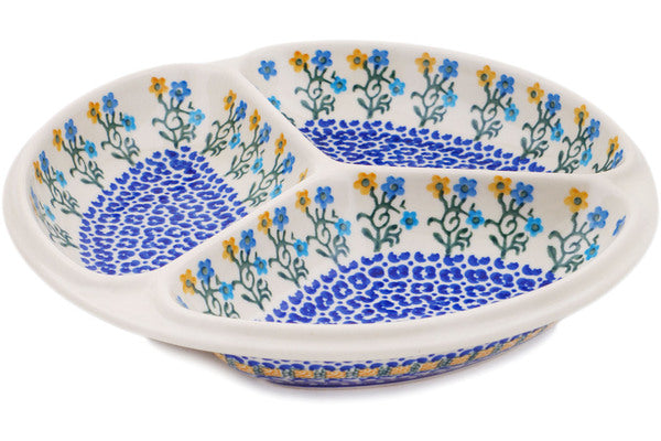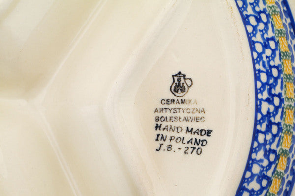 This Field Of Wildflowers 10" Divided Dish was handmade and hand decorated in Boleslawiec, Poland by skilled artisans according to old traditional methods. This Polish stoneware is microwave, dishwasher, freezer, and oven safe up to 480°F. It does not contain lead or cadmium. It is part of the Field Of Wildflowers Collection.