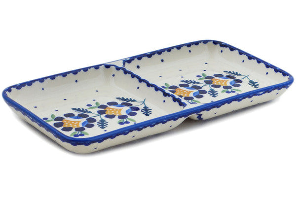 Divided Dish 10" Orange And Blue Flower Theme