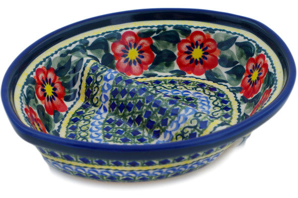 This Poppies All Around 8" Divided Dish was handmade and hand decorated in Boleslawiec, Poland by skilled artisans according to old traditional methods. This is a Polish pottery Signature Unikat, which means that it has been hand painted with both sponges and brushes and it is signed by the artist who painted it. Unikat pieces are the most intricate works of art. Larger Unikat items take hours of very careful work to finish. This Polish stoneware is microwave, dishwasher, freezer, and oven safe up to 480°F. It does not contain lead or cadmium. It is part of the Poppies All Around Collection.